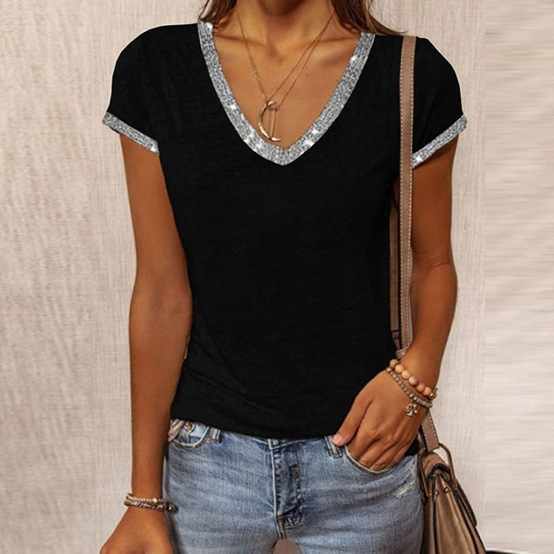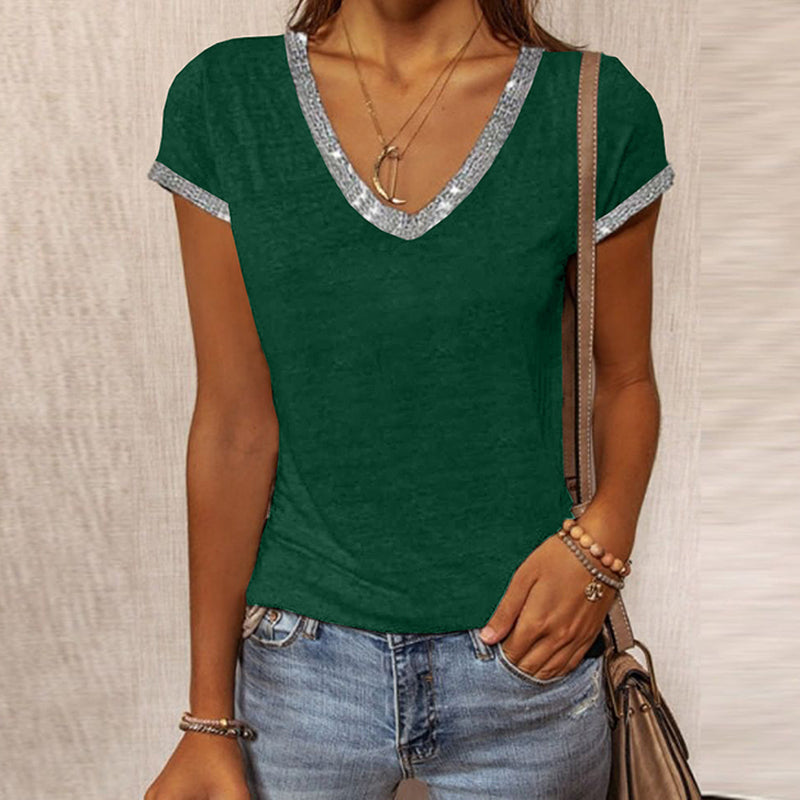 Macymars™ V Neck Shiny Contrast Color Casual Fashion Women's T-Shirt €19.99