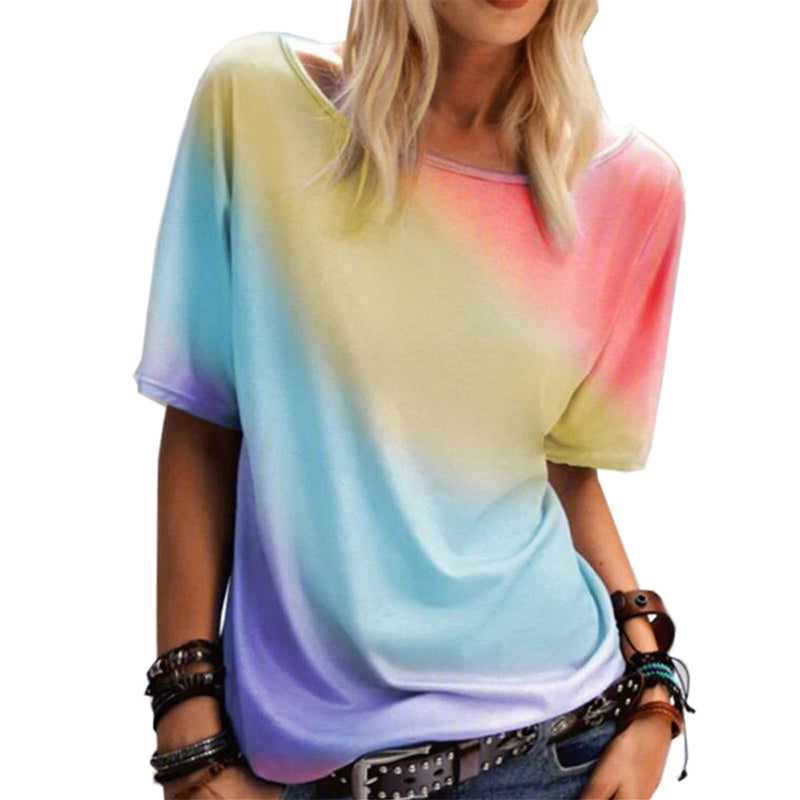 Macymars™ Rainbow Gradient Print Loose Casual Crewneck Women’s T-Shirt