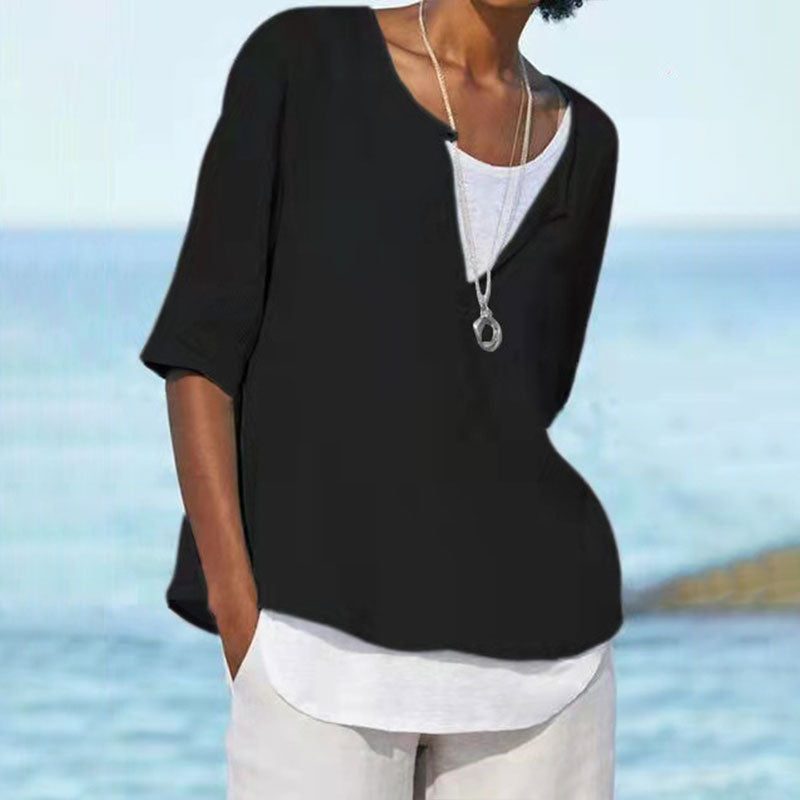 Macymars™ Fashion V Neck Solid Color Cotton And Linen Casual Women’s Shirt